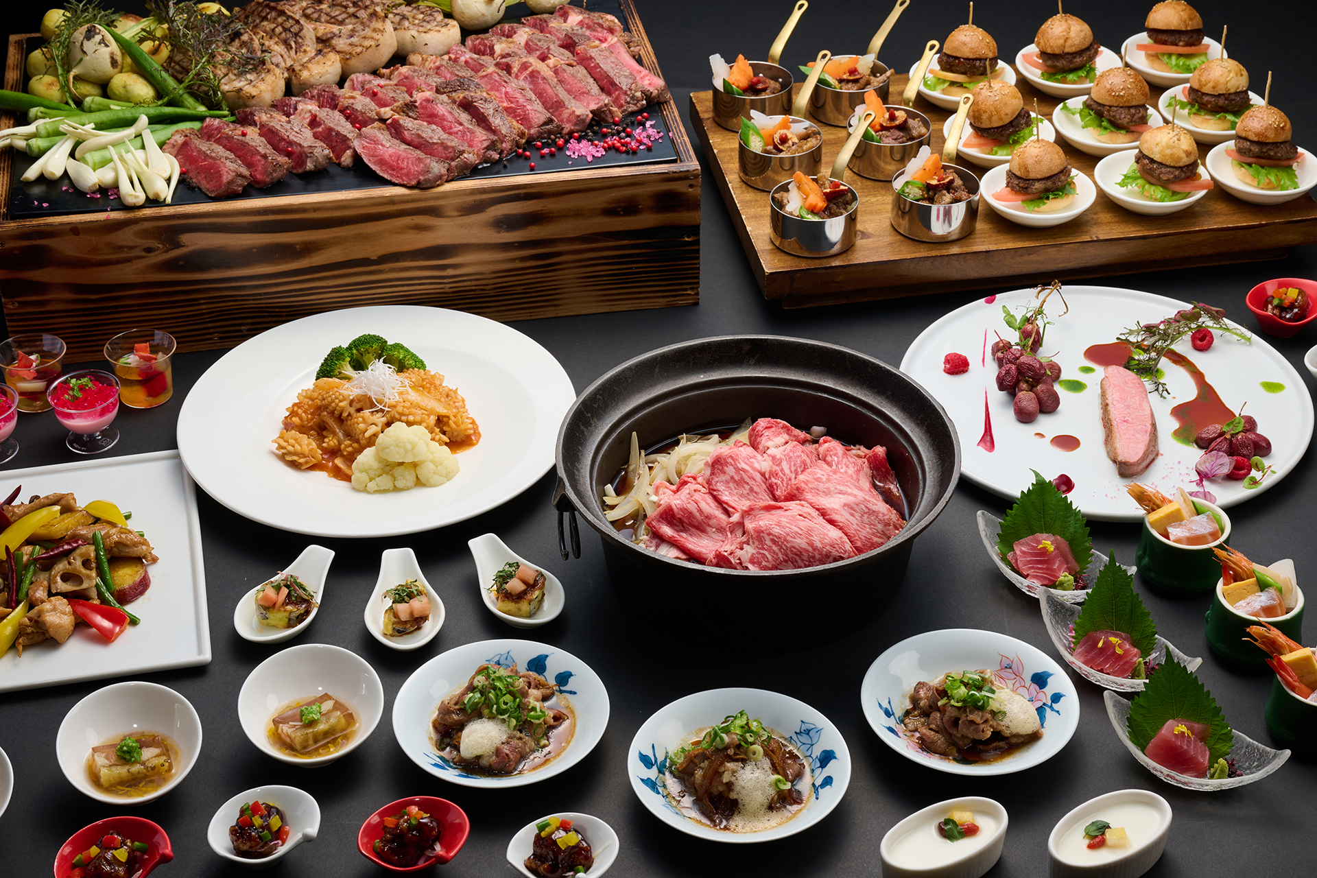 牛ステーキはもちろん、あぐーのグリエや合鴨ローストなど肉の祭典!